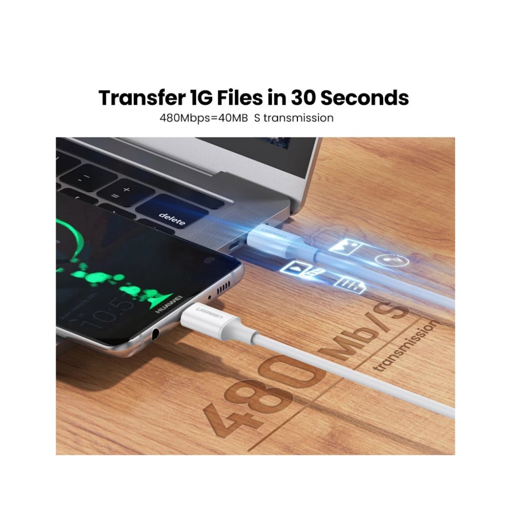 Дата кабель USB-C to USB-C 0.5m 3A 60W US264 white Ugreen (60517)