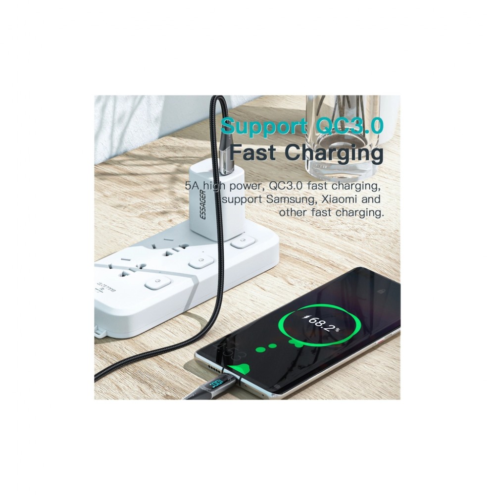 100W, Відображення потужності в реальному часі: вихідна потужність відображається в режимі реального часу, дозволяючи дізнатися потужність заряджання та ста, тканинне обплетення, швидка зарядка - Quick Charge