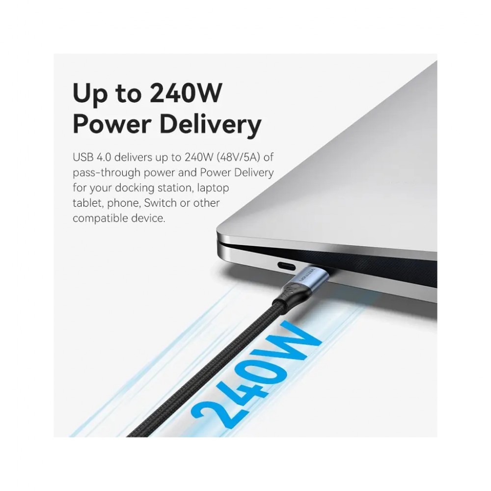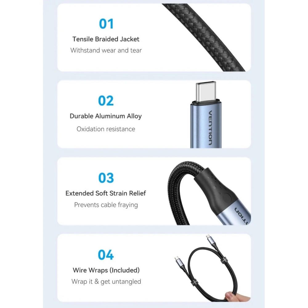 Дата кабель USB-C to USB-C 1.0m Thunderbolt 4 240W (50V/5A) 8K60Hz Gray Aluminum Alloy VENTION (TAVHF)