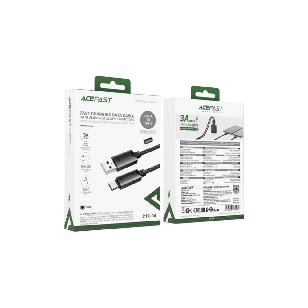 Дата кабель USB 2.0 AM to USB-C 1.2m 60W black Acefast (6974316284482)