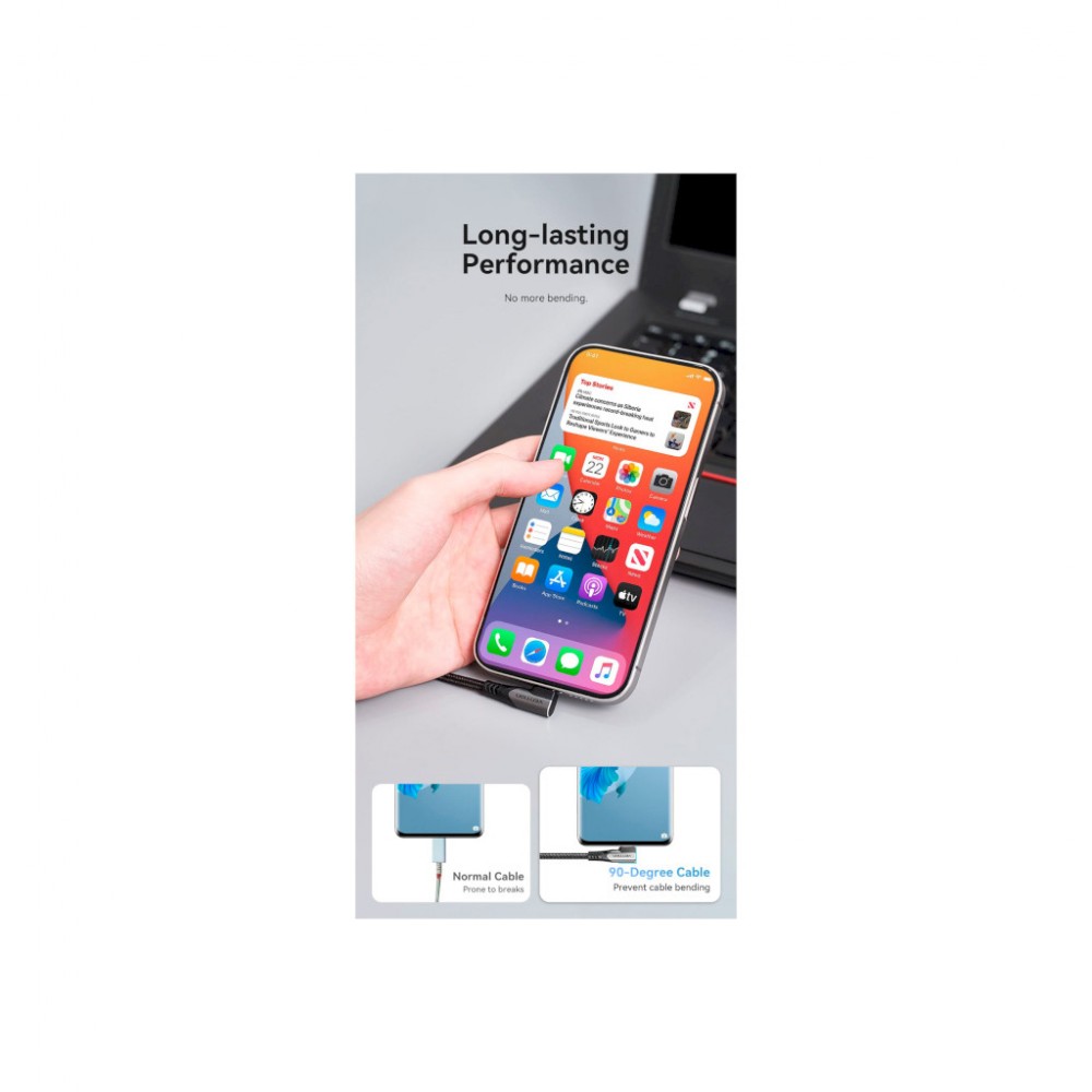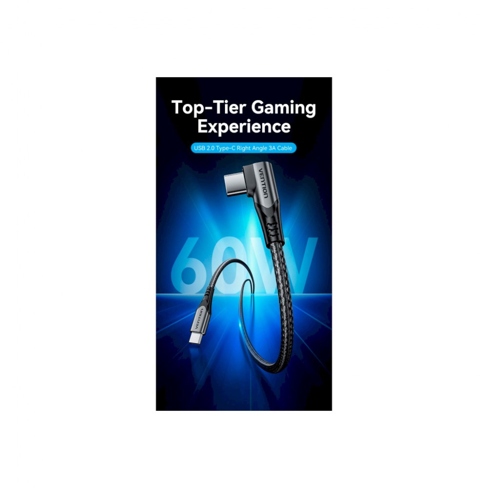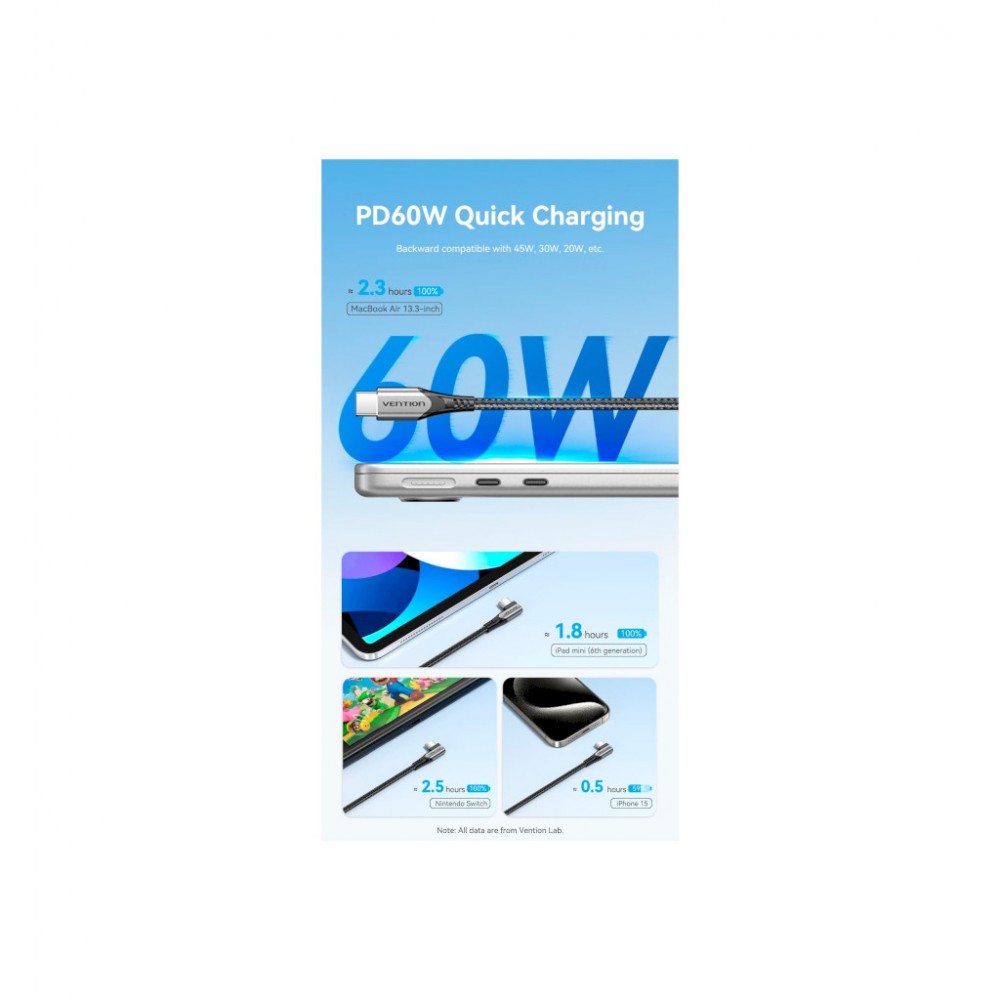 Дата кабель USB-C to USB-C 0.5m USB2.0 60W (20V/3A) angle 90° Gray Aluminum Alloy VENTION (TRAHD)