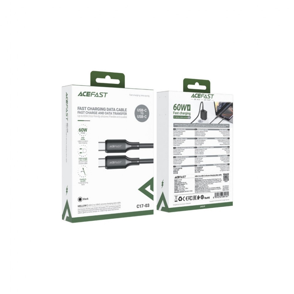 Дата кабель USB-C to USB-C 1.2m 3A 60W silicone black Acefast (6974316284161)