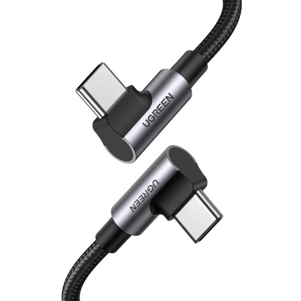 Дата кабель USB-C to USB-C 1.0m 100W (20V/5A) 90° corner braided black Ugreen (70696)