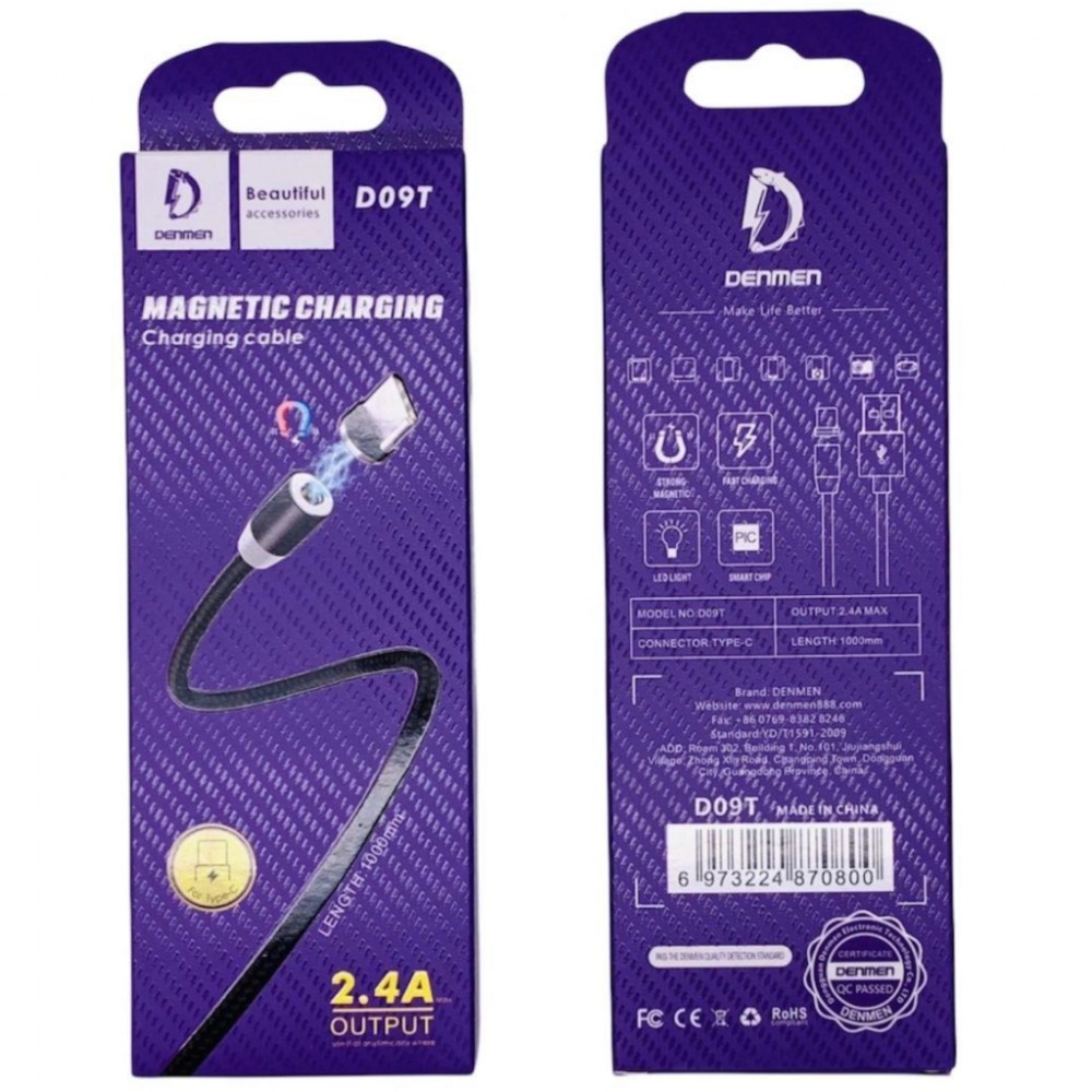 Дата кабель USB 2.0 AM to USB-C magnetic black Denmen (DN-D09T-BK)