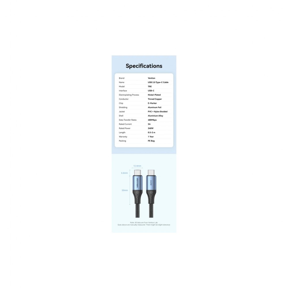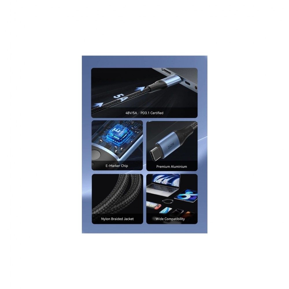 Дата кабель USB-C to USB-C 1.5m 240W aluminum black Vention (TREBG)