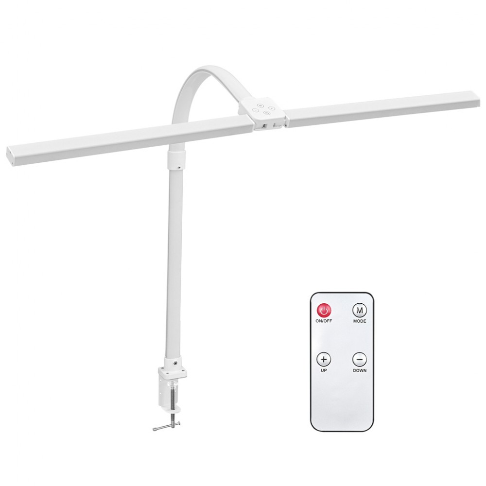 Тип лампи - світлодіодні, Підходить для - будинки і інтер'єру, для спальні, для кабінету, для офісу, для дитячої, Тип використовуваної лампи - світлодіодна (LED), Cпосіб установки - струбцина, Спрямованість світла - має кут регулювання, вбудована (незамінна), Тип цоколя - без цоколя, 1, 1000 Лм, 6500 К, 2700 К, змінна, Вимикач - пульт дк, ні, так, Особливості - таймер, нічник, пульт дистанційного керування, гнучка ніжка, Матеріал - метал, пластик, Колір - білий