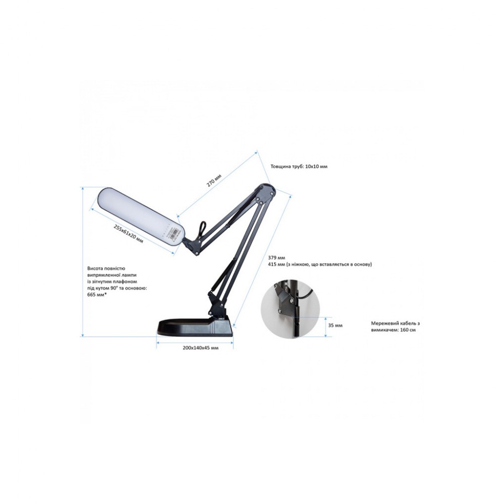 Стиль - модерн, Вид лампи - офісні, Тип лампи - LED-стрічка, Кріплення - підставка, вбудована (незамінна), Вимикач - кнопка на дроті, ні, так, Матеріал - метал, пластик, Колір - білий