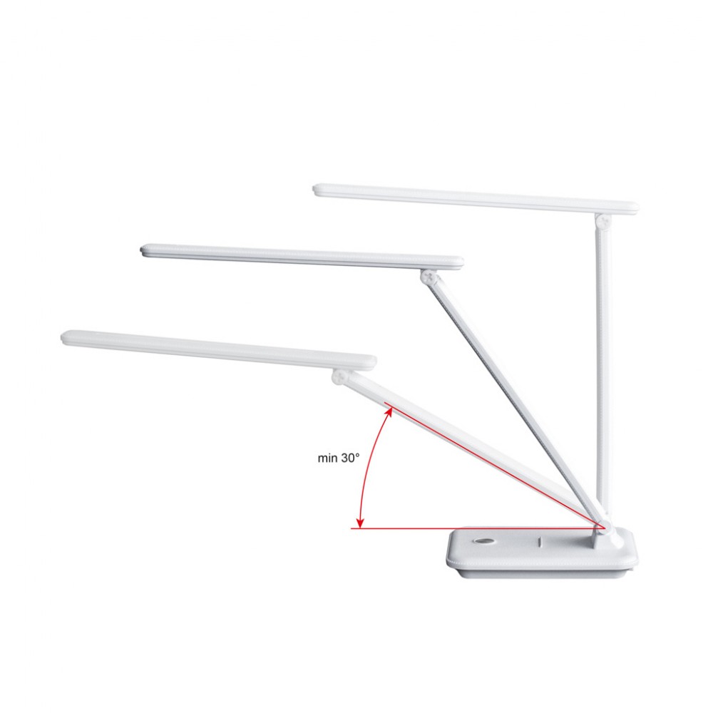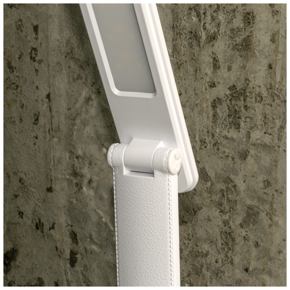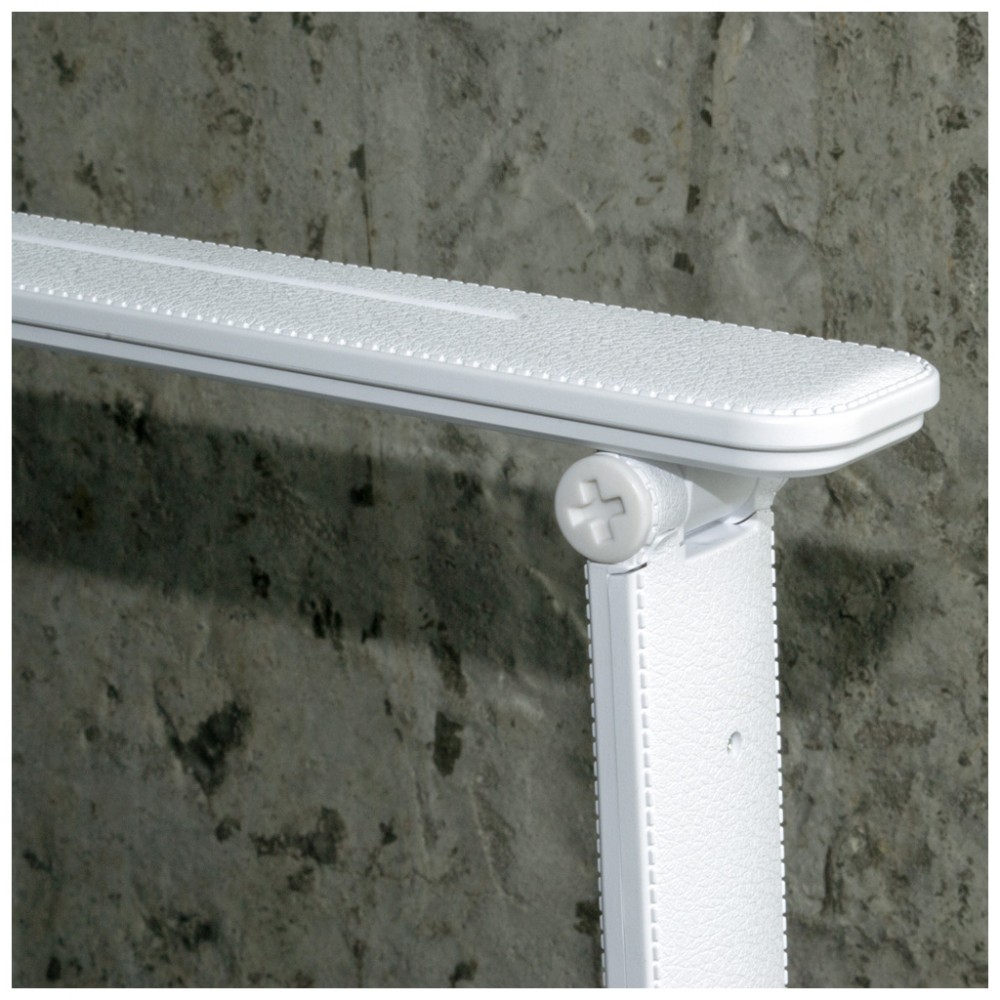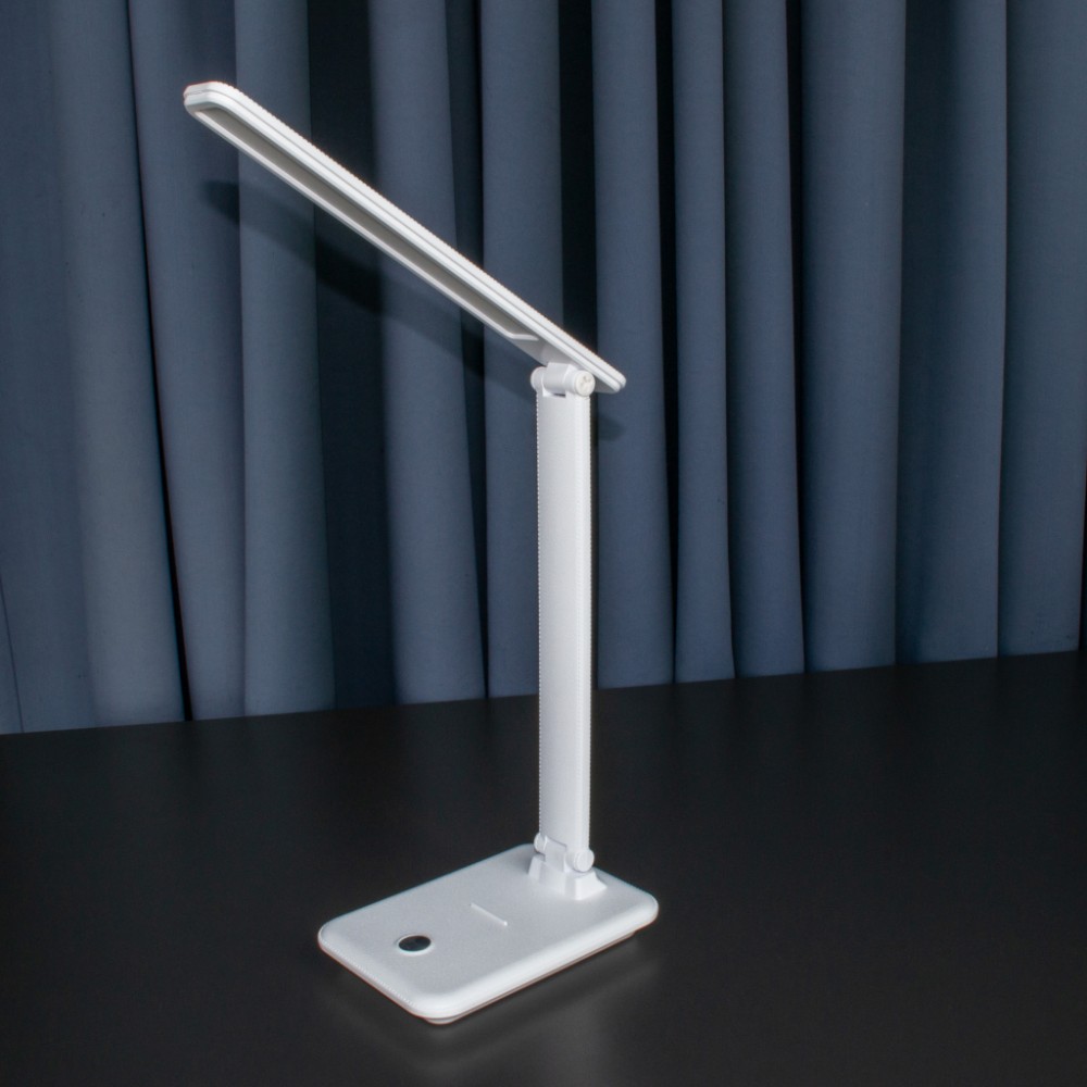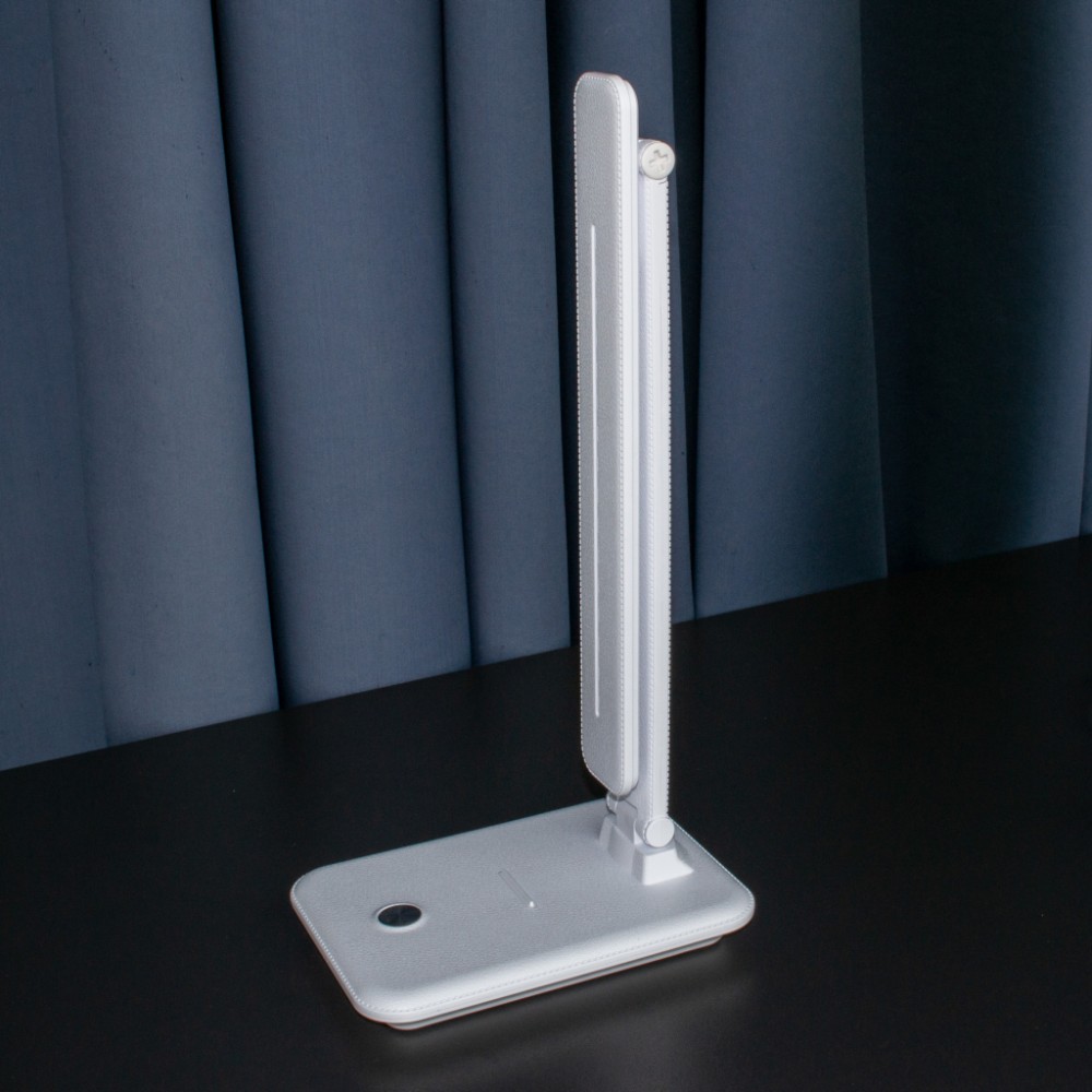 Стиль - модерн, Вид лампи - офісні, Тип лампи - LED-стрічка, Кріплення - підставка, вбудована (незамінна), Вимикач - кнопка на корпусі, ні, так, Особливості - підставка для гаджета, Матеріал - метал, пластик, Колір - білий