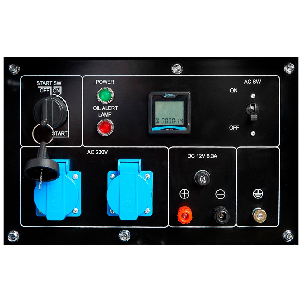 Габарити генератора становлять 750x500x640 мм, а вага — 111 кг, що робить його достатньо компактним для транспортування та зручним у використанні. Завдяки електростартеру запуск генератора здійснюється швидко та без зусиль.