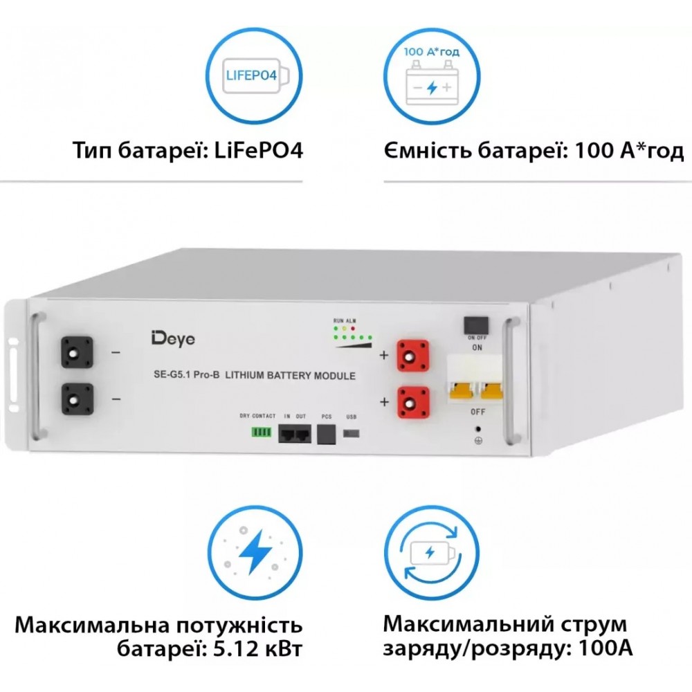 Батарея LiFePo4 Deye SE-G5.1 Pro, 51.2V - 100Ah (SE-G5.1 Pro-B)