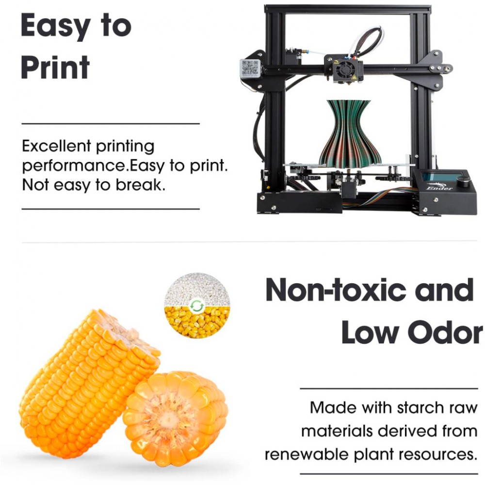 Тип пластика - PLA, Діаметр - 1.75 мм, Температура екструзії - 190-230℃, 60 °C, Колір - червоний, золотий, зелений