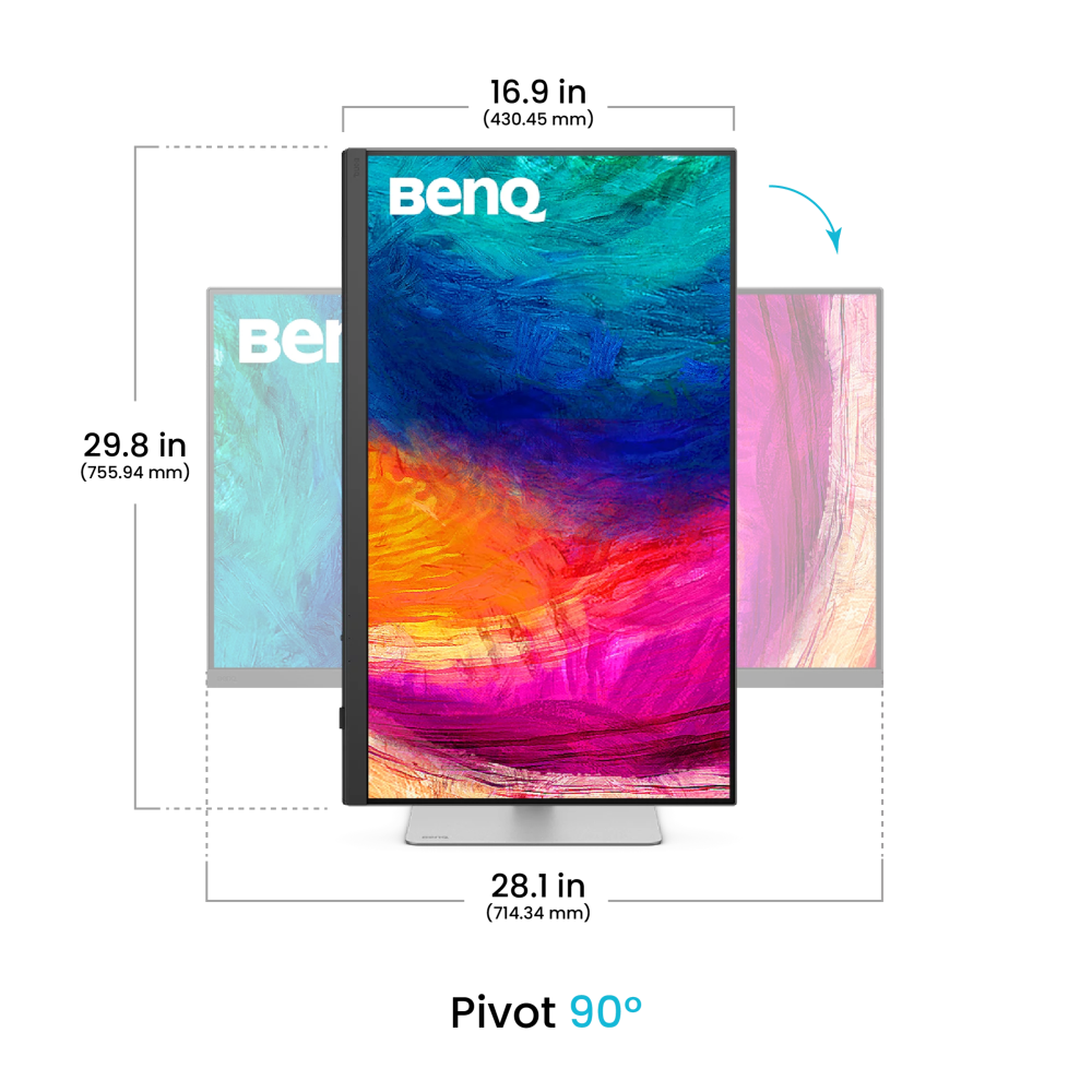 Ергономічний дизайн підставки монітора BenQ PD3226G допомагає облаштувати максимально зручне та охайне робоче середовище. Обирайте оптимальні для вас висоту, кути нахилу та повороту екрана, обертайте його на 90°.