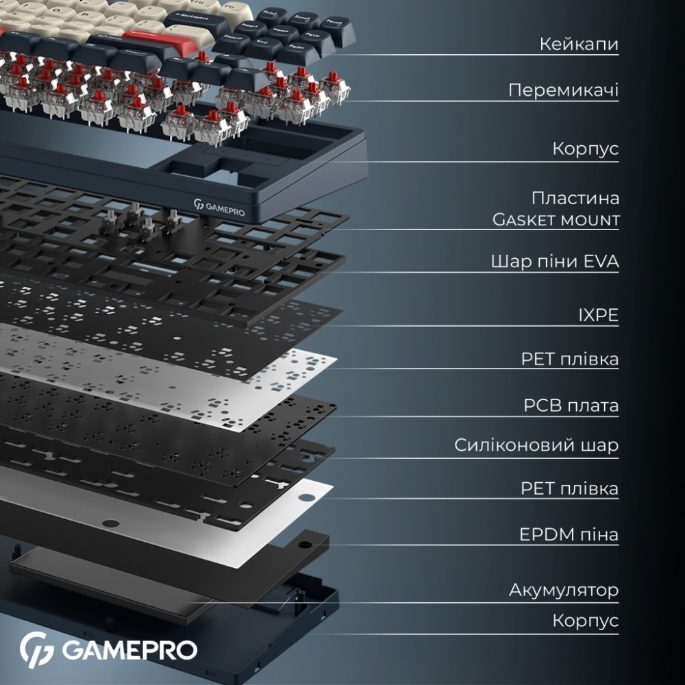 Клавіатура GamePro Asgard Ragnar Wireless/Bluetooth/USB UA Blue (MK285BL)