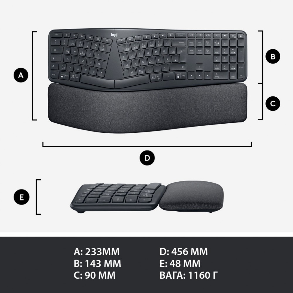 Клавіатура Logitech ERGO K860 for Business Bluetooth/Wireless UA Black (920-010352)