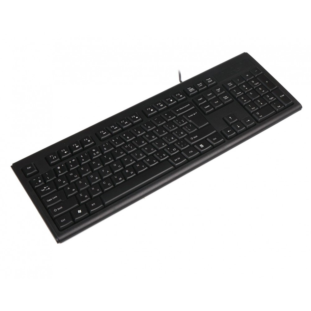 Повнорозмірна клавіатура з пірамідальним розташуванням основних клавіш, що знижує стомлюваність рук при тривалій роботі. Металеве дно підвищує стійкість клавіатури при інтенсивному друку і жвавій грі. Лазерне гравірування клавіш відрізняється підвищеною стійкістю до стирання.