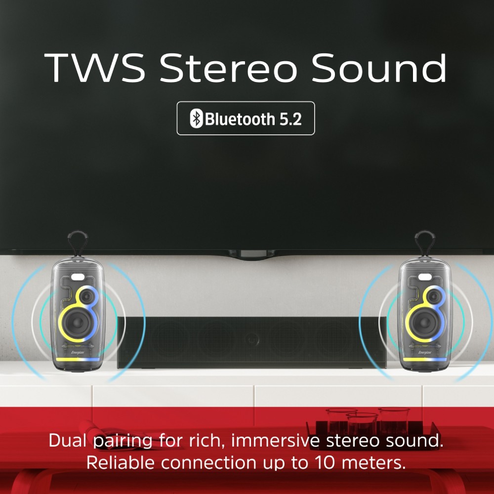 Об’єднуйте дві окремі колонки по Bluetooth в акустичну систему 2.0, використовуючи функцію TWS та влаштовуйте гучні вечірки.