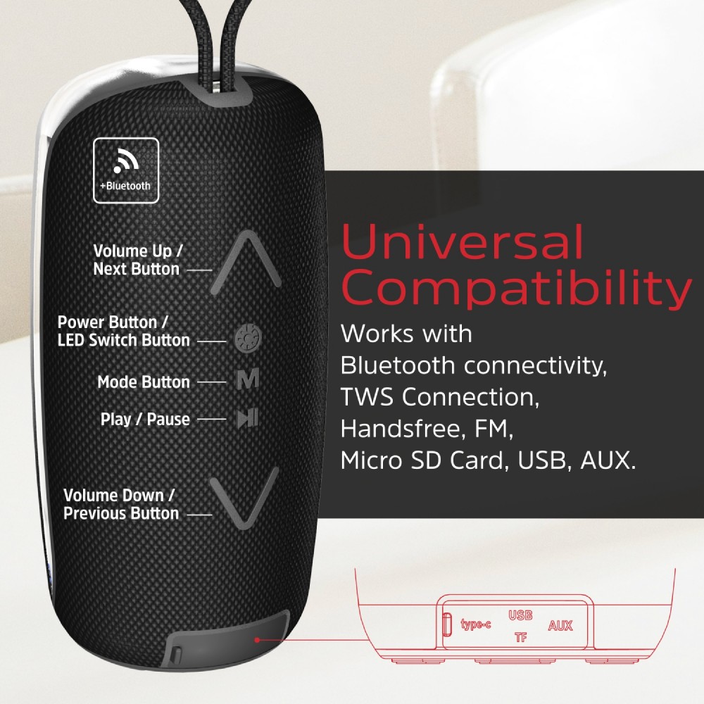 Функція hands-free дає змогу використовувати акустичну систему Energizer BTS164 як гучномовець та спілкуватись з друзями, брати участь у конференц-дзвінках з колегами по роботі чи діловими партнерами.