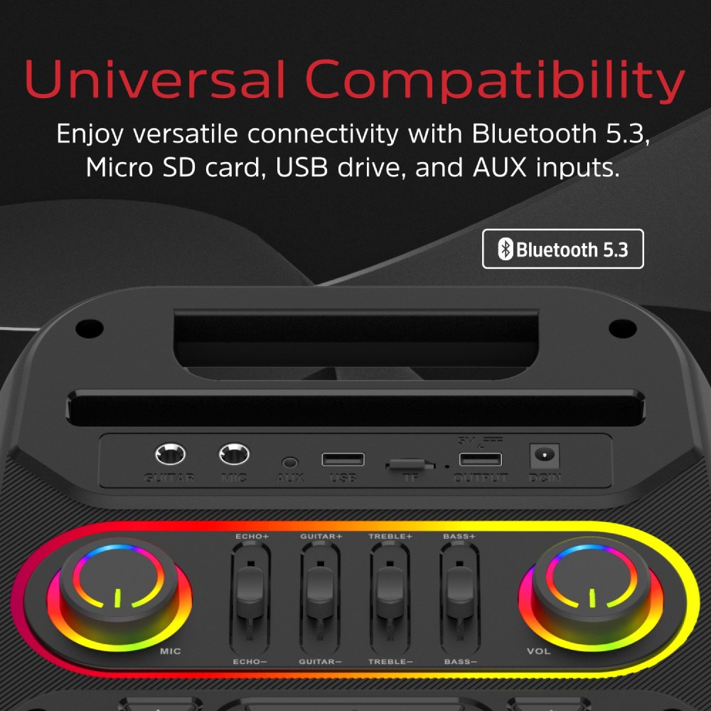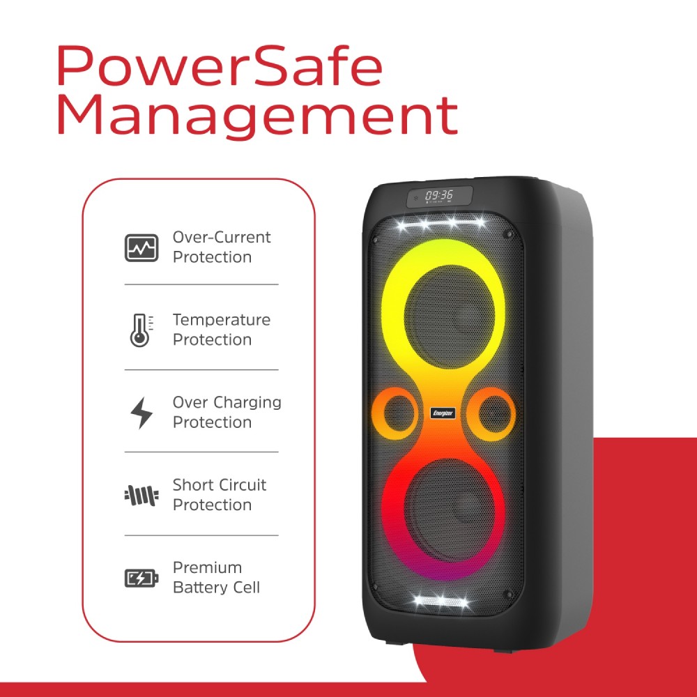 Акустична система 1.0 Energizer 50Вт Bluetooth 5.3/RMS/TF/USB/AUX/TWS/MIC, Dual 6.5” Drivers чорна