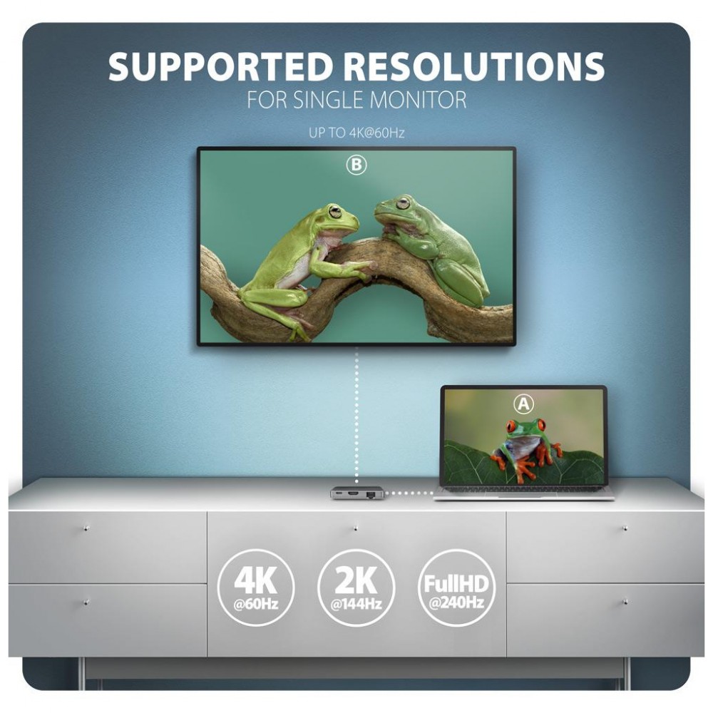 AXAGON HMC-5HL — це ідеальне рішення для користувачів, які потребують швидкого підключення периферії, стабільного інтернет-з’єднання та заряджання ноутбука через один універсальний пристрій.