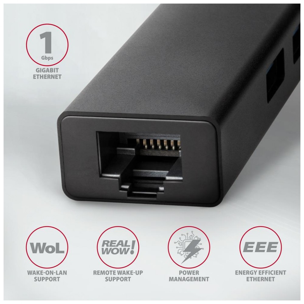 Концентратор підтримує широкий набір енергозберігаючих стандартів, зокрема ACPI, LPM, AOAC, IEEE 802.3az EEE, що знижує енергоспоживання під час простою. Це робить AXAGON HMC-GL3A ідеальним вибором для мобільних користувачів і роботи з ультрабуками.