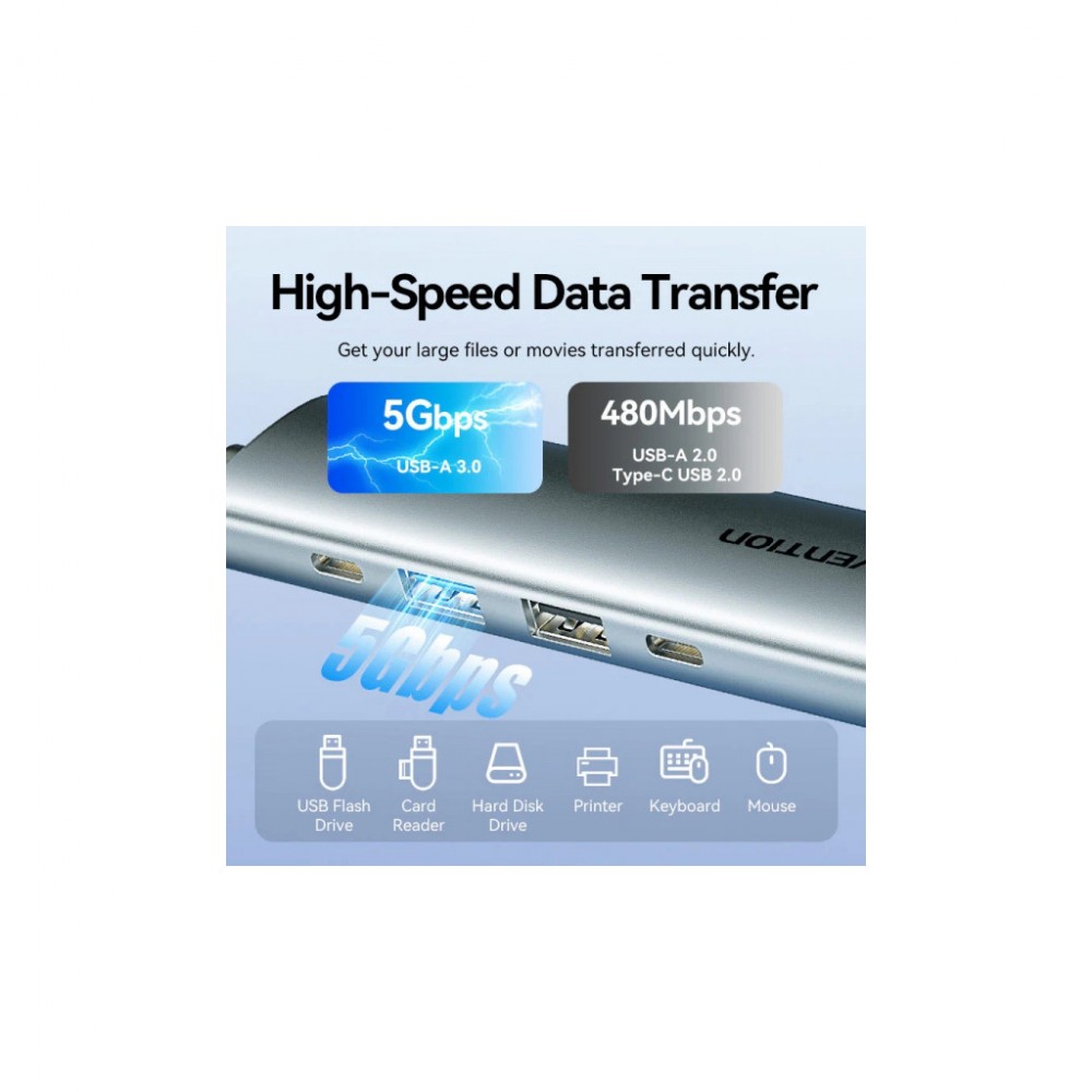 USB-хаб Vention USB-C 5-in-1 HDMI + USB 3.0 + USB 2.0 + USB-C 2.0 (TGLHB)