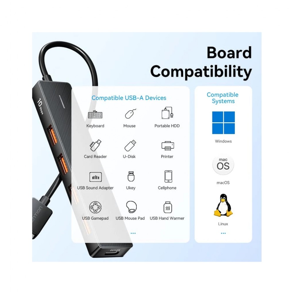 USB-хаб Vention USB to 4xUSB 3.2 Gen2 + USB-C 10Gbps 0.15m black (CHOBB)