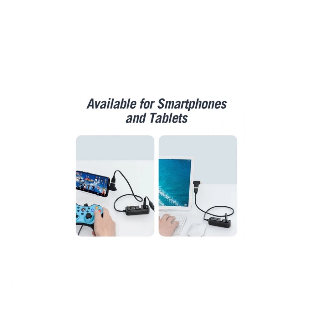 Концентратор підтримує функцію OTG, таким чином ви можете підключити клавіатуру, флэш накопичувач або мишу до пристрою що підтримує цю функцію.