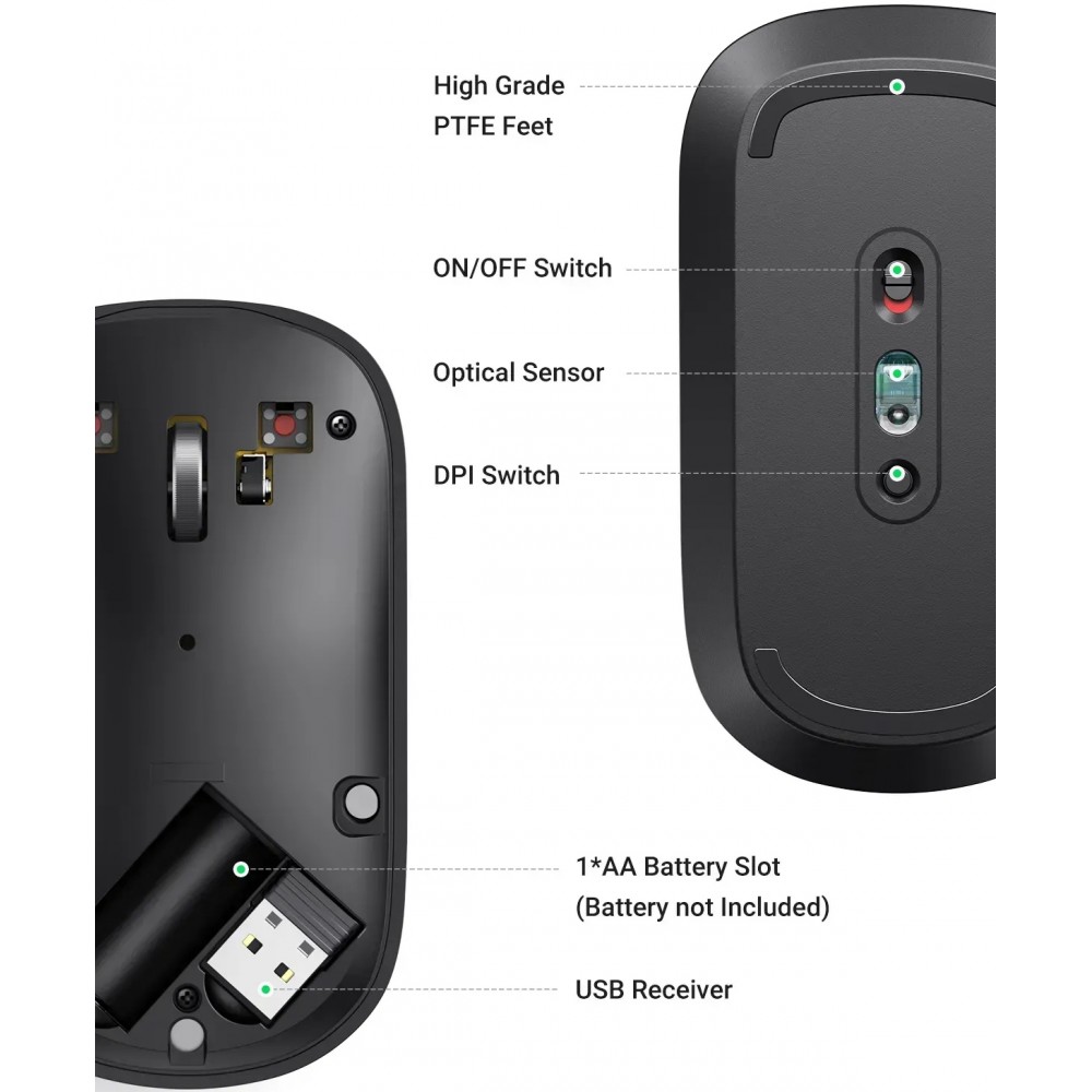 Мишка UGREEN 2.4GHz MU001, бездротова, 4000dpi., 3кн., чорна