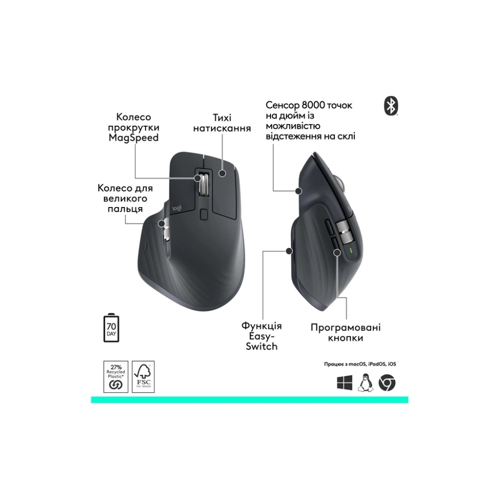 Миша Logitech MX Master 3S Performance Bluetooth Graphite (910-007501)