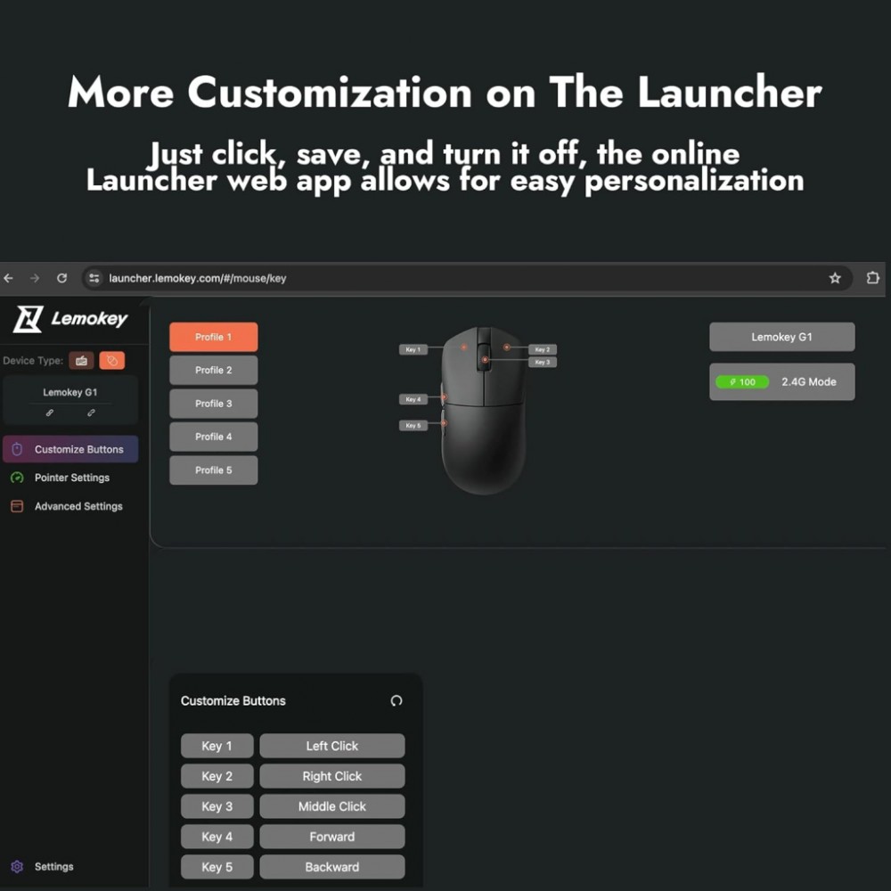 Миша Lemokey G1 USB-A/USB-C/Wireless 8K Black (G1-A1)