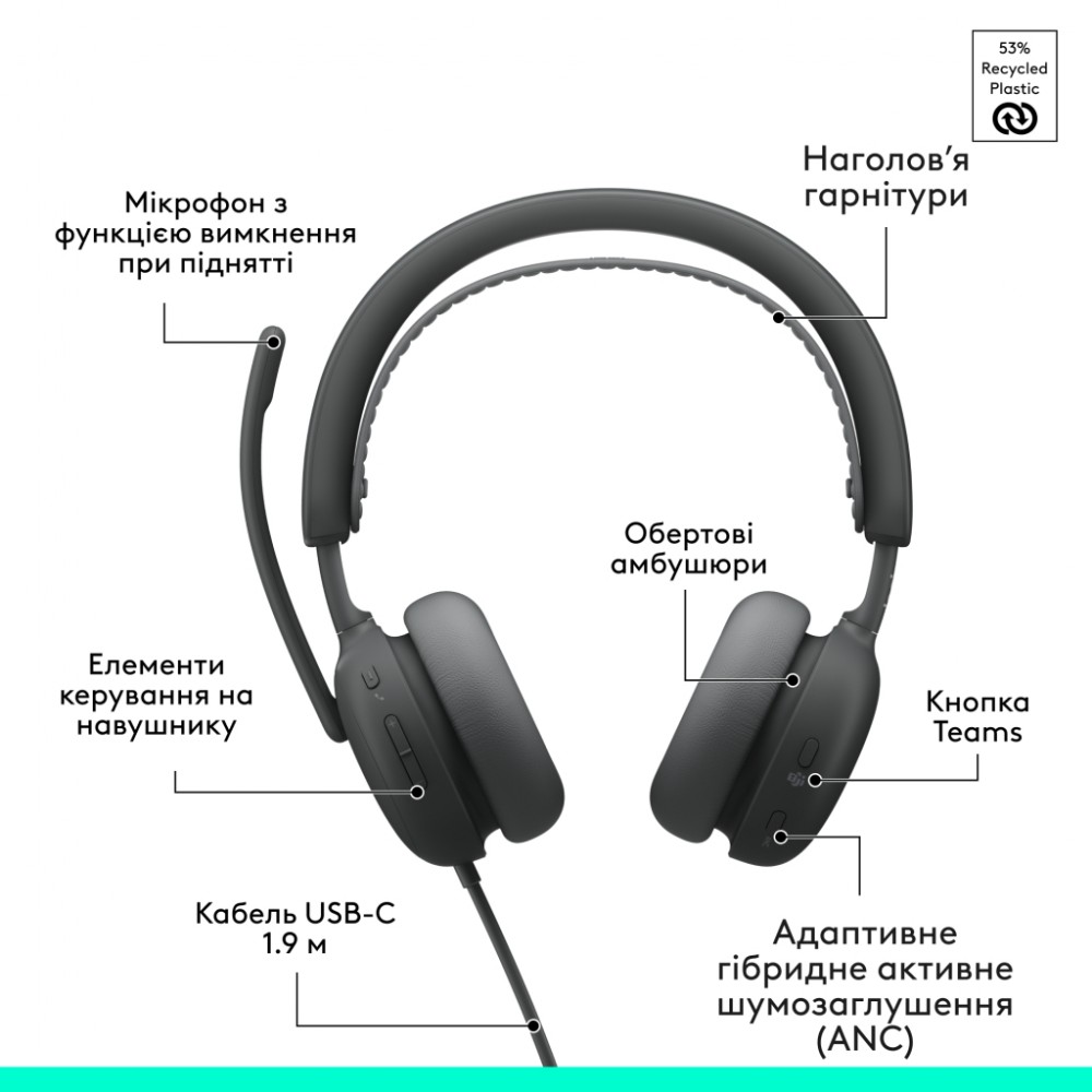 Навушники Logitech Zone Wired 2 for Business USB Graphite (981-001615)