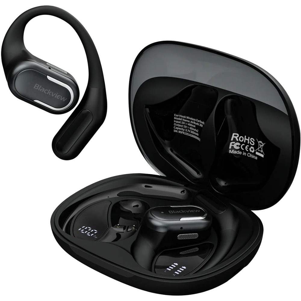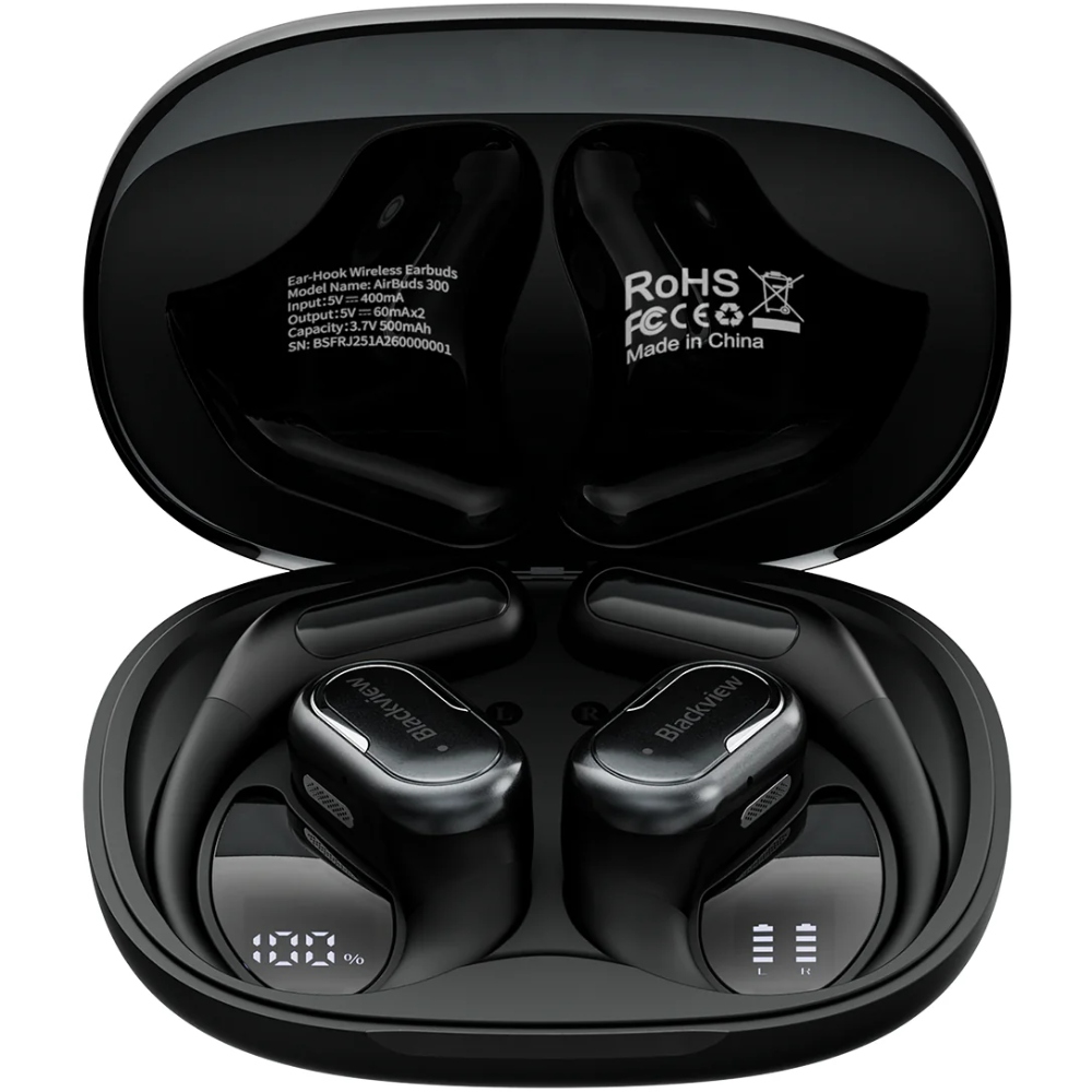Вчасно поповнюйте заряд навушників Blackview AirBuds 300 - цифровий дисплей на внутрішній частині футляра сповістить про рівень його заряду.