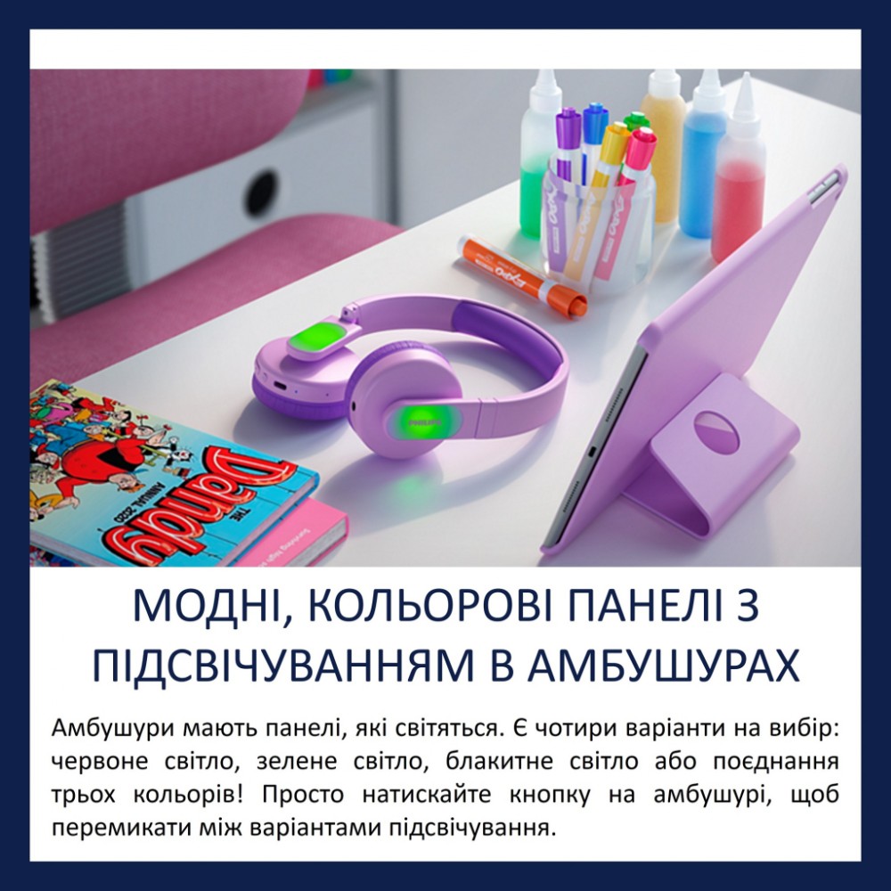 Навушники Philips Kids TAK4206 On-ear Colored light panels Wireless Pink (TAK4206PK/00)