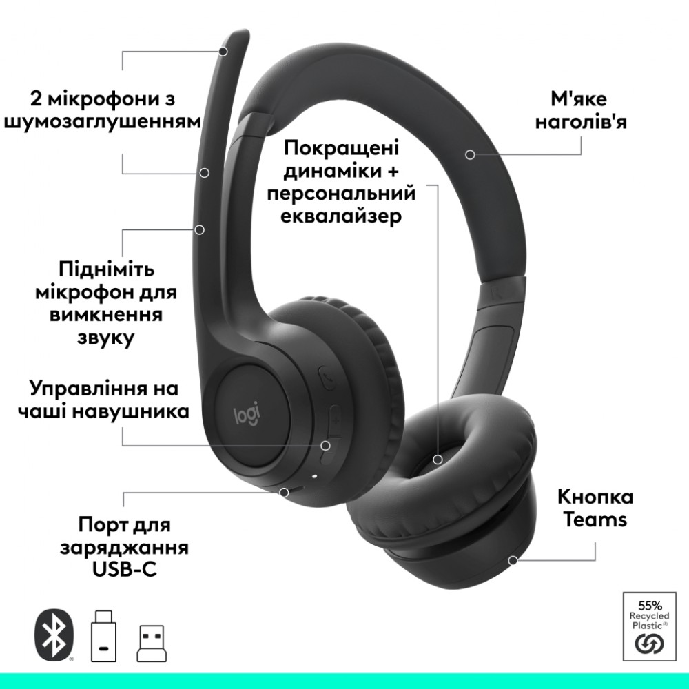 Навушники Logitech Zone 305 for Business Wireless/Bluetooth Teams Black (981-001451)