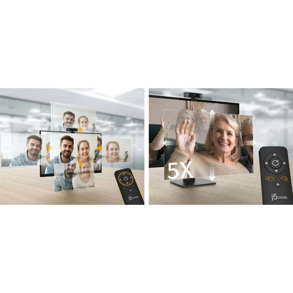 Камера підтримує роздільну здатність 4K при 30 Гц і оптимізує відеодзвінки за допомогою п’ятикратного цифрового зуму, що робить її ідеальною для зустрічей у великих конференц-залах, а також для використання однією особою.